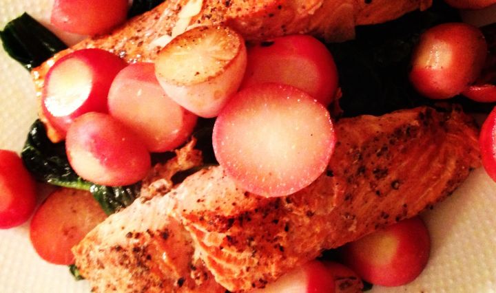 I made a dish like this in 2004 for my then roommate, now husband. I’ve recently revived it by subbing in braised radishes for the potatoes. If you’re doing Paleo, it’s not strictly paleo friendly as made, as it’s got … Continue reading Mustard Salmon with Braised Radishes